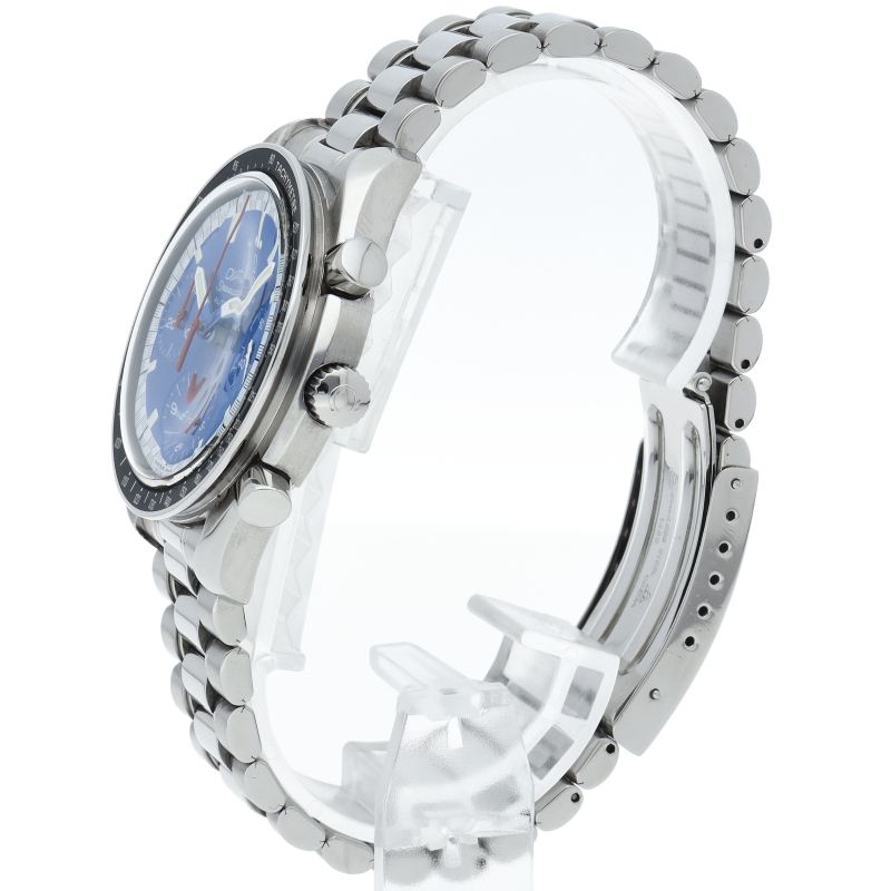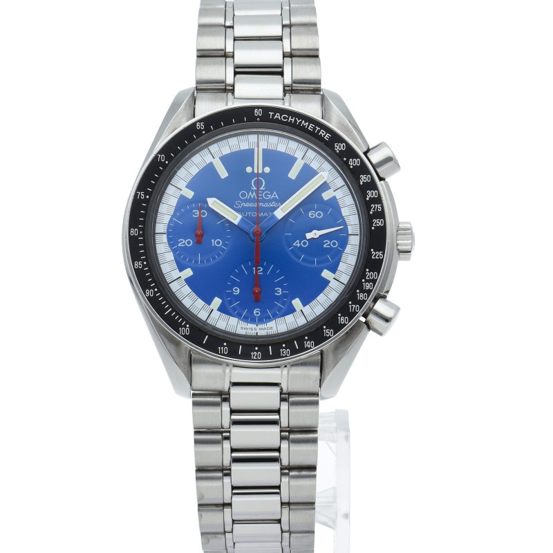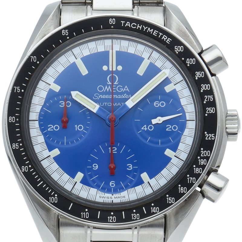 数々のF1チャンピオンに輝いたシューマッハとオメガのコラボレーション「スピードマスター」。シンプルな中にもひときわ目立つ文字盤の配色がオシャレな1本。
