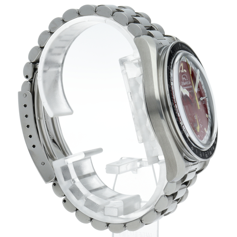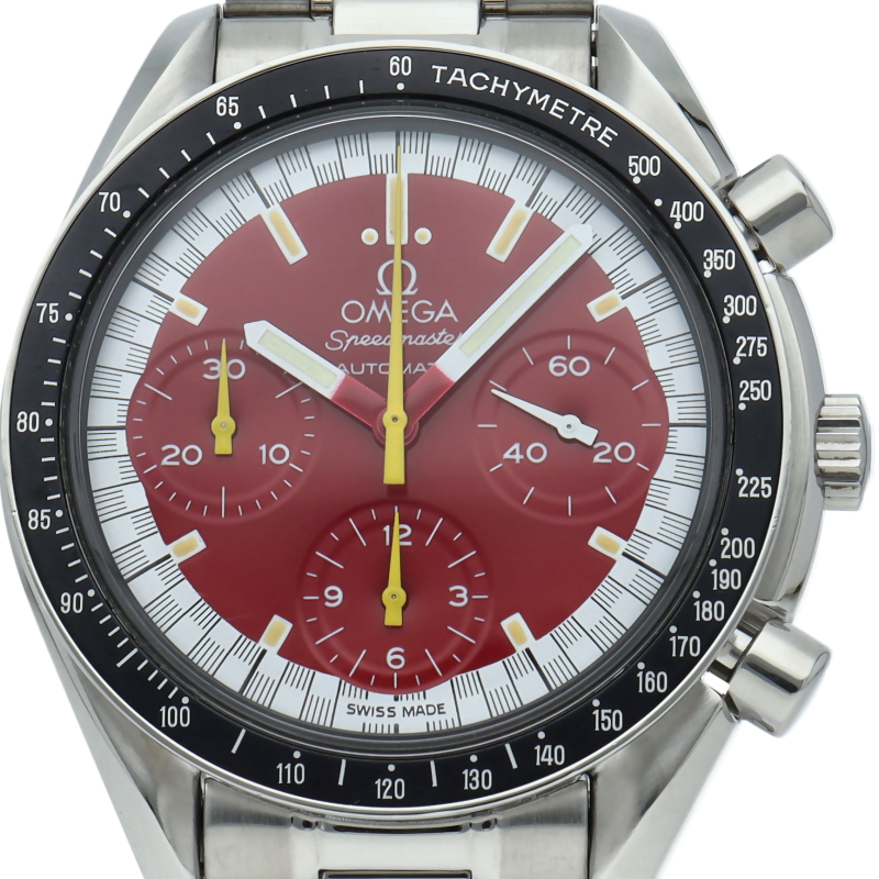 数々のF1チャンピオンに輝いたシューマッハとオメガのコラボレーション「スピードマスター」。シンプルな中にもひときわ目立つ文字盤の配色がオシャレな1本。