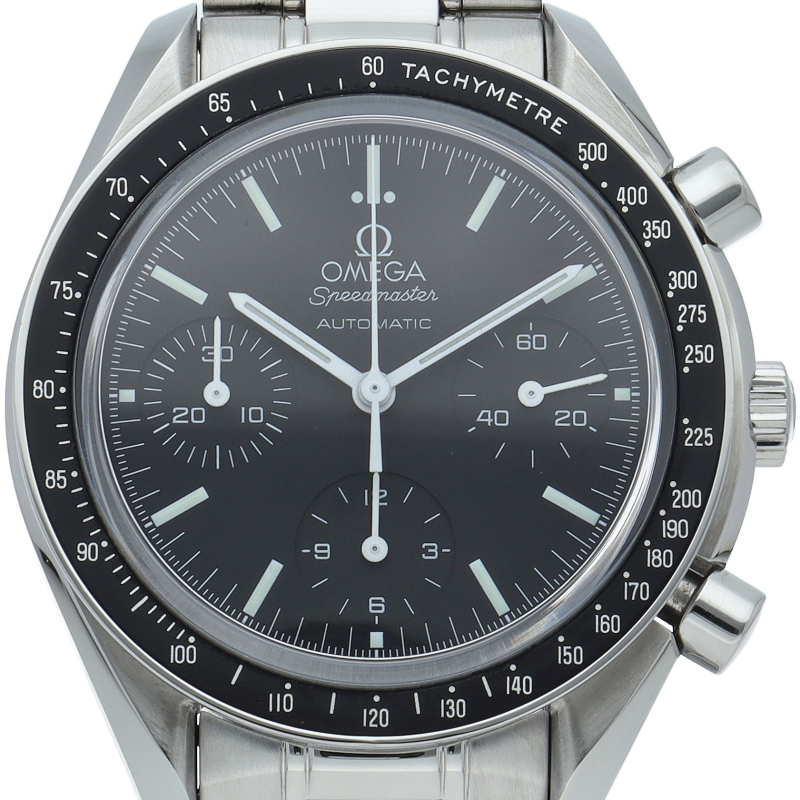 オメガを代表する人気シリーズ「スピードマスター」。プラ風防からサファイアクリスタル風防へ仕様変更された実用性の高いモデルです。すでに生産終了となり、これからの相場が楽しみな1本です。