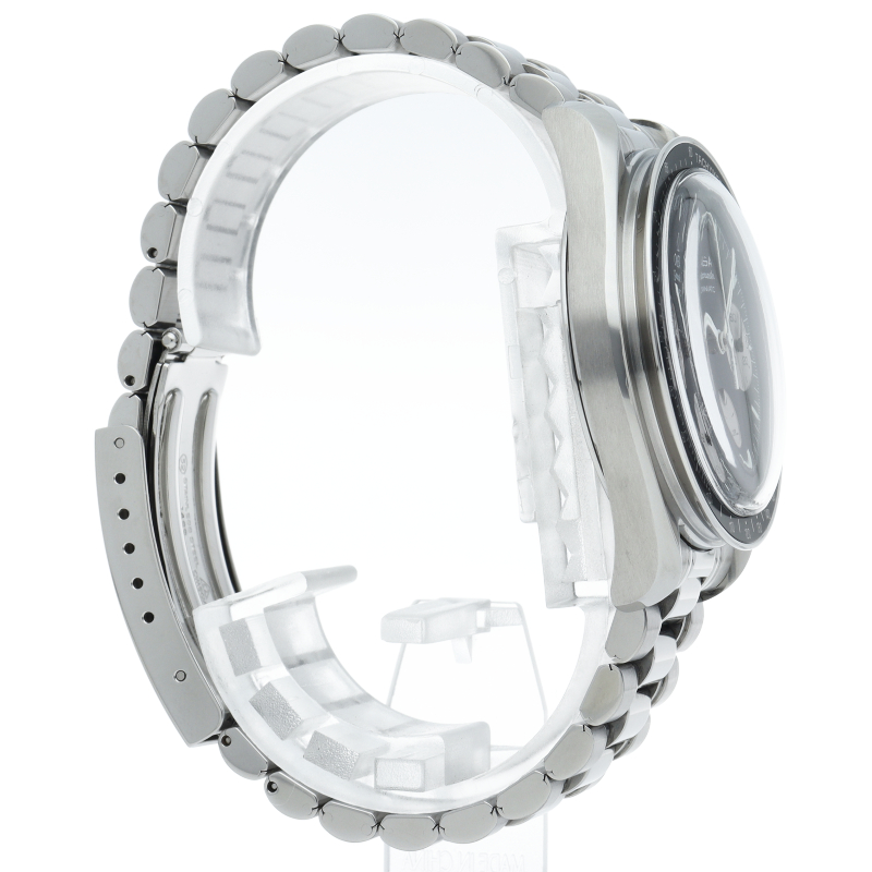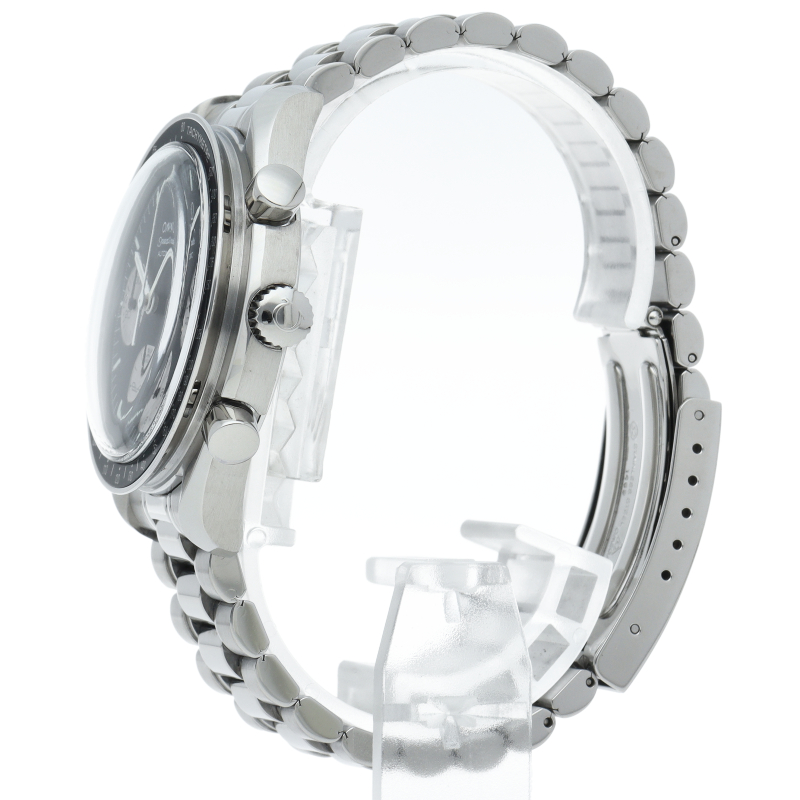 プロフェッショナルと基本コンセプトは同じながら、ひと回り小振りなケースを採用して1971年に登場した「スピードマスター」。こちらは日本限定モデルとなります。クラシカルなプラスチック風防も魅力のひとつです。