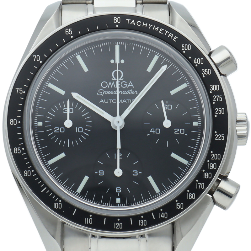 オメガを代表する人気シリーズ「スピードマスター」。プラ風防からサファイアクリスタル風防へ仕様変更された実用性の高いモデルです。すでに生産終了となり、これからの相場が楽しみな1本です。