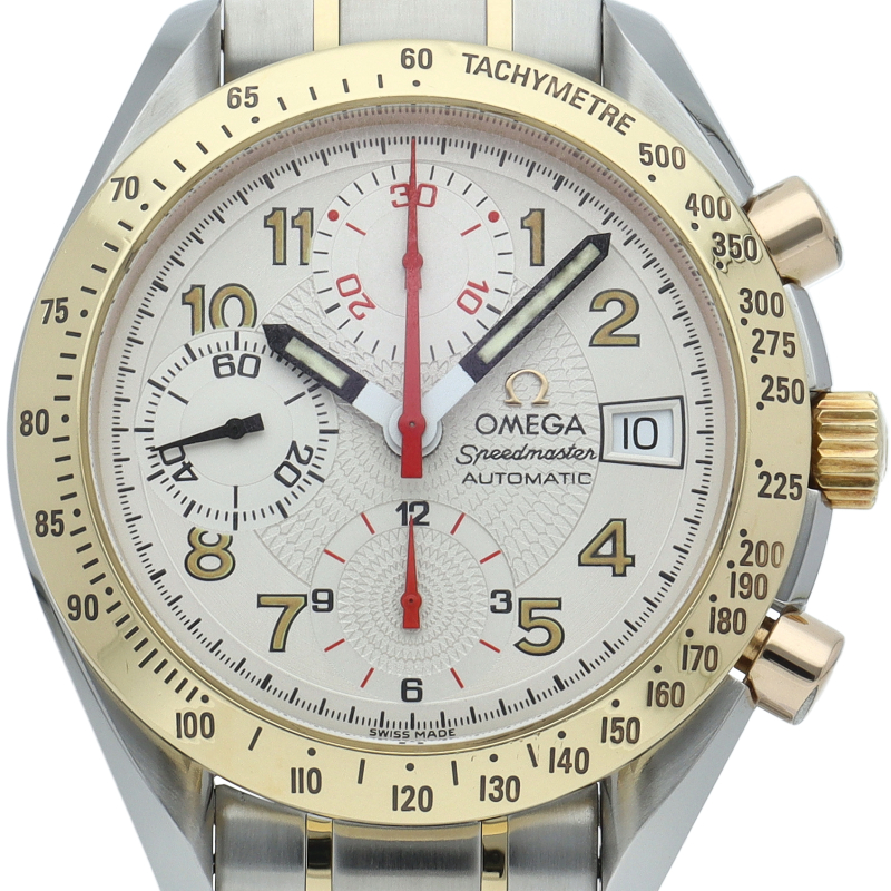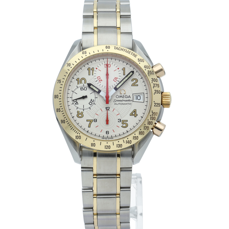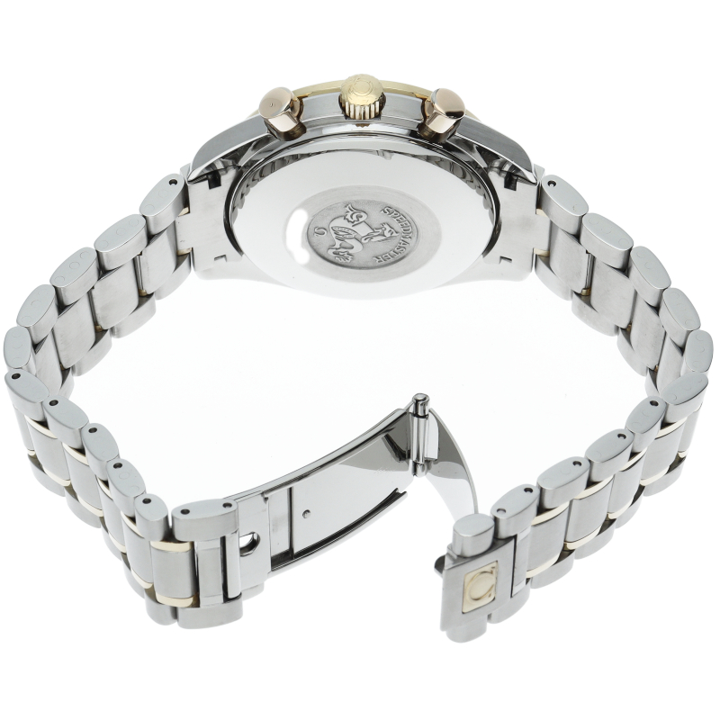 スピードマスター誕生40周年発表されたマーク40。貴重なコンビモデルとなります。クロノグラフ・デイト表示機能付きと便利で実用性のある1本です。