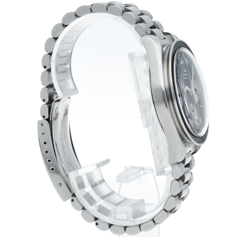 プロフェッショナルと基本コンセプトは同じながら、ひと回り小振りなケースを採用して1971年に登場した「スピードマスター」。こちらは日本限定モデルとなります。クラシカルなプラスチック風防も魅力のひとつです。