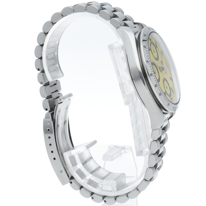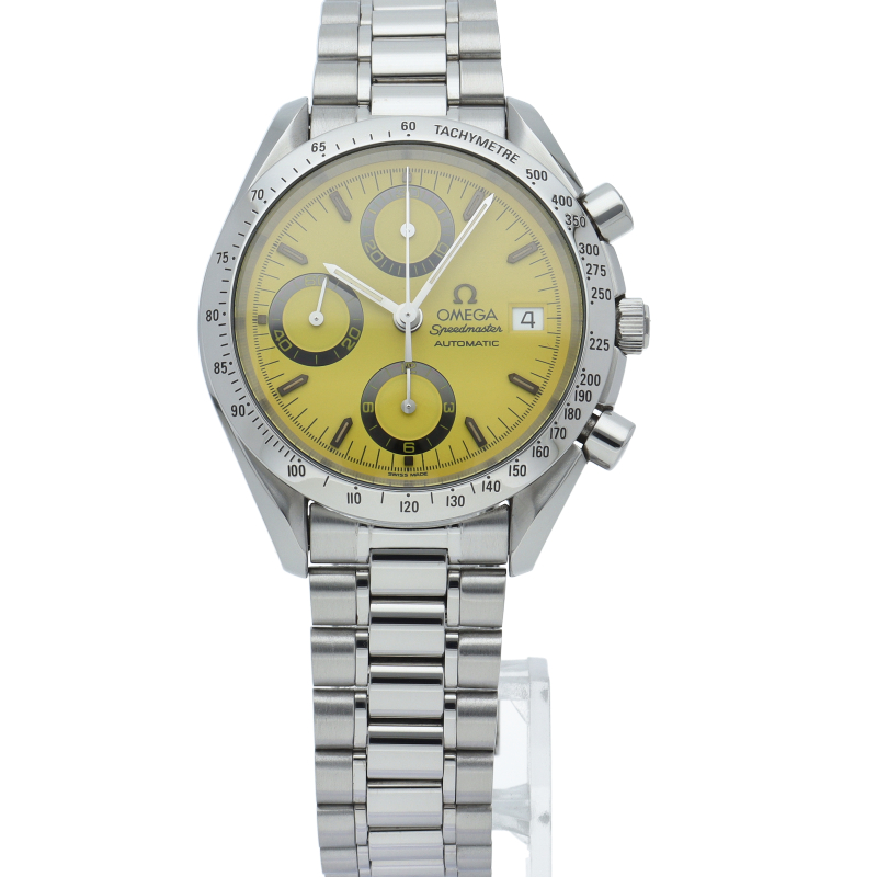 1998年のワールドチャンピオンを記念したミハエル・シューマッハの限定モデルです。イエローのダイヤルはその後の数あるスピードマスターのバリエーションでもほとんど見ません。希少な1本です。