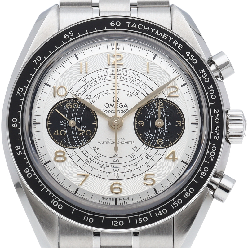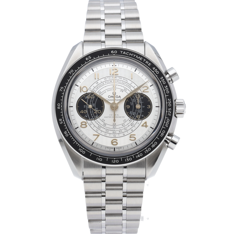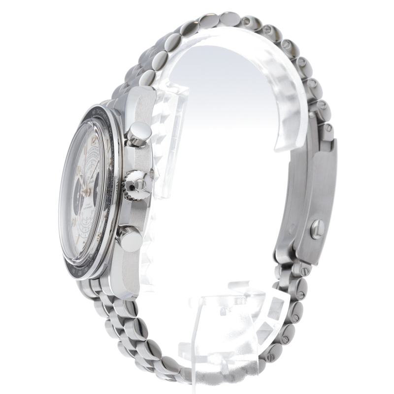 スピードマスターの伝説的なデザインと、1940年代から続くオメガのクロノグラフ ウォッチの歴史から得たインスピレーションを融合した、「クロノスコープ」コレクション。文字盤中央に、タキメーター・パルスメーター・テレメーターが1940年代のスネイルデザインを用いてプリントされ、今までのスピードマスターにはない独特なクラシカルな雰囲気を作り出しています。