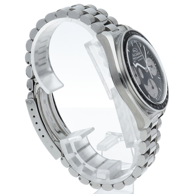 プロフェッショナルと基本コンセプトは同じながら、ひと回り小振りなケースを採用して1971年に登場した「スピードマスター」。こちらは日本限定モデルとなります。クラシカルなプラスチック風防も魅力のひとつです。