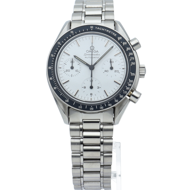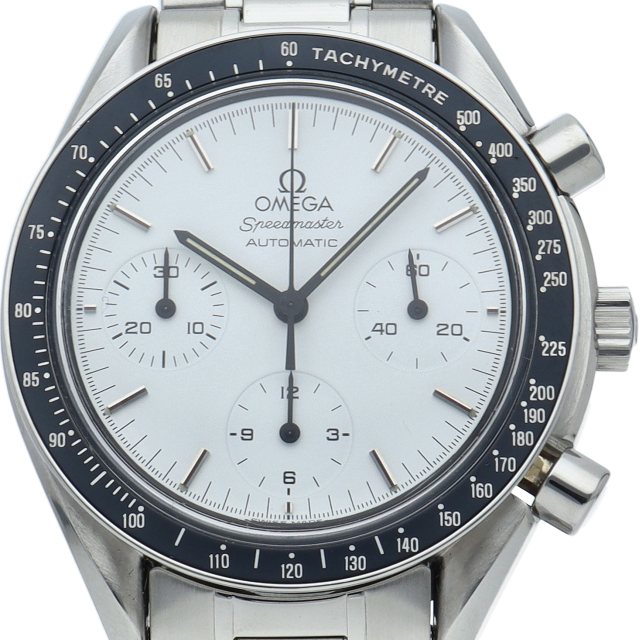 オメガを代表する人気シリーズ「スピードマスター」。プラ風防を使用したレトロな雰囲気かつシンプルにまとまったデザインがスタイルを選ばずにご使用いただけます。こちらは丸井のみで取り扱いされたホワイトダイヤルで、希少となっております。ST175.0032。