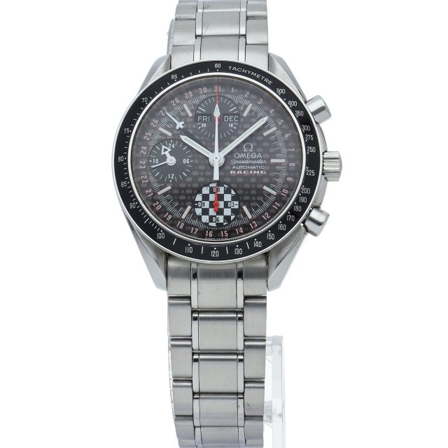 2002年のミハエル・シューマッハ限定スピードマスターです。「レーシング」の名が与えられ、チェッカーフラッグを連想させるダイヤルが特徴になっています。ケース裏にはシューマッハのサイン、“WORLD CHAMPION 2002”の刻印と限定シリアルが刻まれます。限定生産本数 「5555本」。