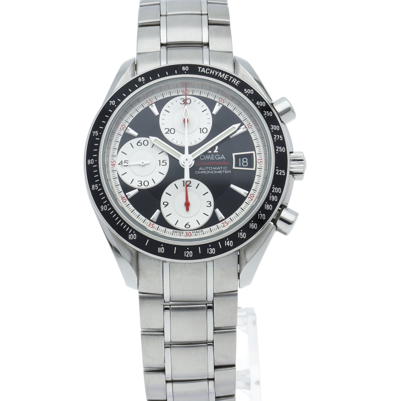 オメガの代表的な人気シリーズ「スピードマスター・デイト」。クロノグラフ・デイト表示機能付きと便利で実用性のある1本です。