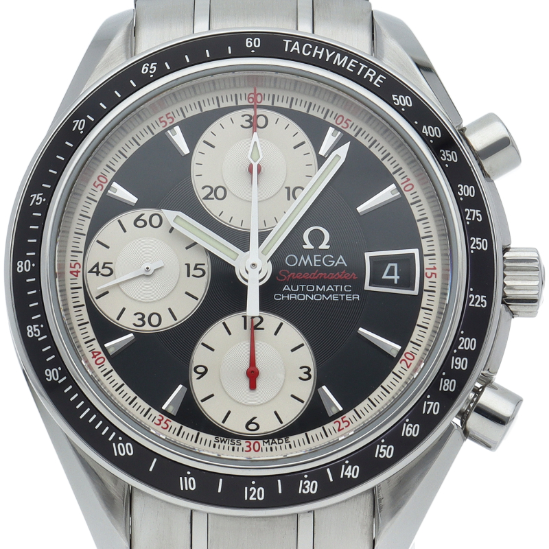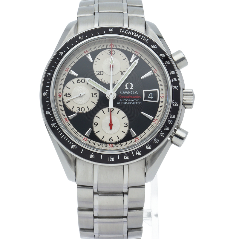 オメガの代表的な人気シリーズ「スピードマスター・デイト」。クロノグラフ・デイト表示機能付きと便利で実用性のある1本です。