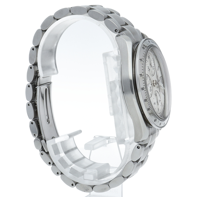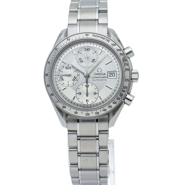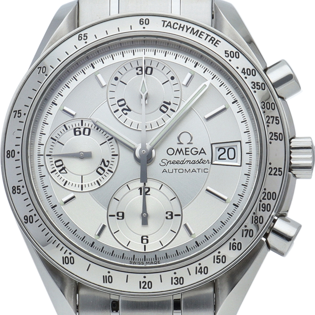 オメガの代表的な人気シリーズ「スピードマスター・デイト」。クロノグラフ・デイト表示機能付きと便利で実用性のある1本です。