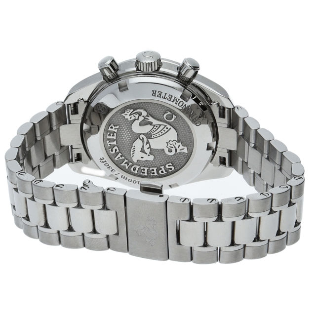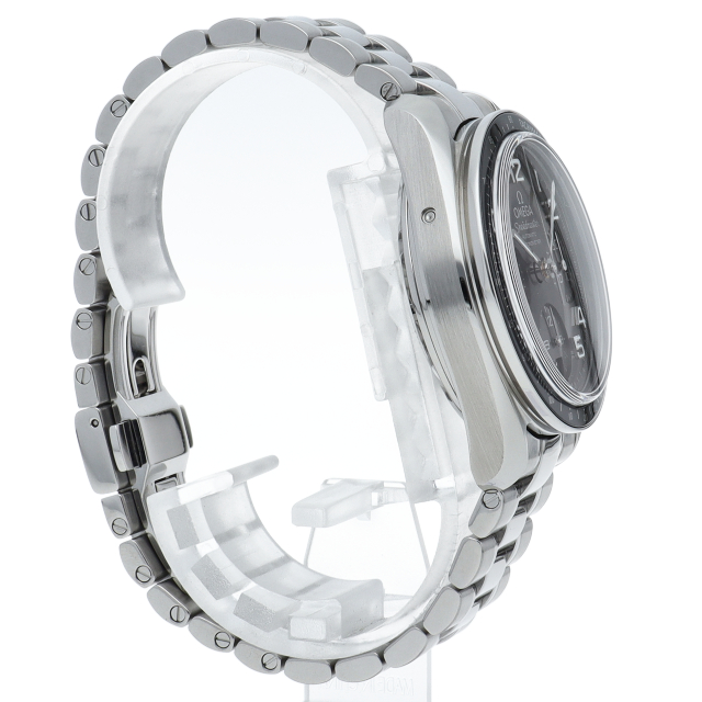 濃いグレーのダイアルとブラックセラミック製タキメーターベゼルがシックな印象。ブレスレットの質感が向上し、調整はネジ式に変更されました。100mの防水性能やCOSC認定クロノメーター規格のキャリバー3304を搭載するなど、各部が進化した新世代のスピードマスターです。