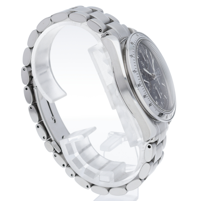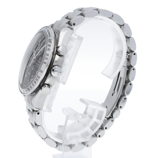 オメガの代表的な人気シリーズ「スピードマスターデイト」。クロノグラフ・デイト表示機能付きと便利で実用性のある1本です。