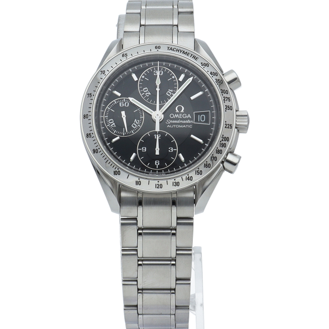 オメガの代表的な人気シリーズ「スピードマスターデイト」。クロノグラフ・デイト表示機能付きと便利で実用性のある1本です。