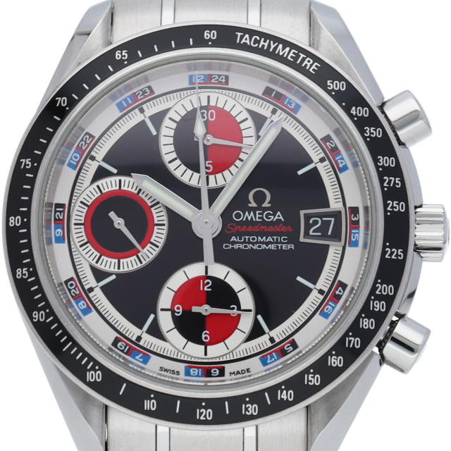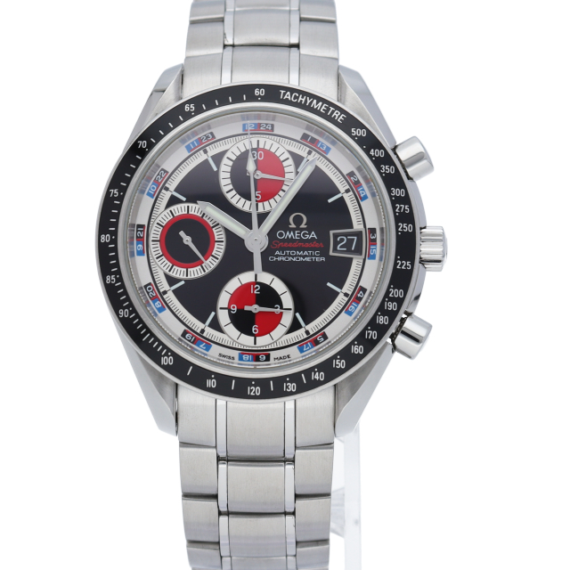 オメガの代表的な人気シリーズ「スピードマスター デイト」。クロノグラフ・デイト表示機能付きと便利で実用性のある1本です。カラフルな文字盤色が、まわりと少し差を付けたい方にうってつけの1本です。
