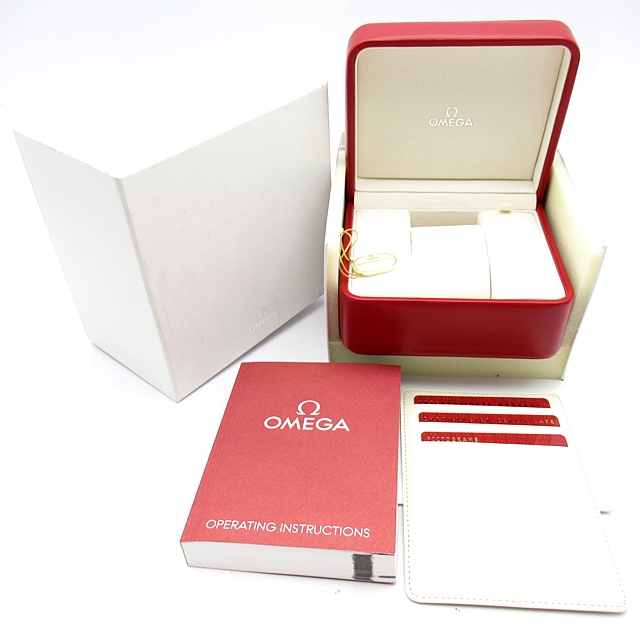 縦に配列されたクロノグラフのインダイヤルは12時位置に30分計、6時位置に12時間計、9時位置にはスモールセコンド(秒針)、3時位置にはオメガのロゴを。さらに12時位置には曜日と月、4本目の針で日付を指すトリプルカレンダーを搭載。スイス公認のクロノメーター検定協会が実施する厳しい検査に合格した時計のみに与えられる称号「クロノメーター」を持ち合わせています。