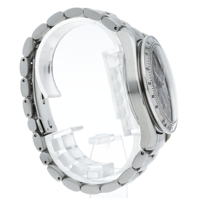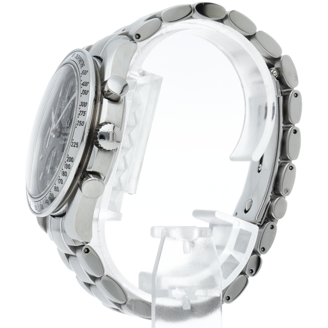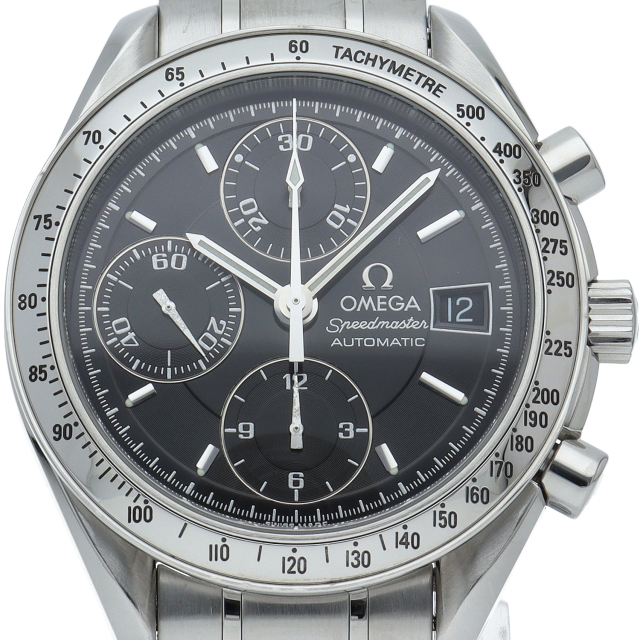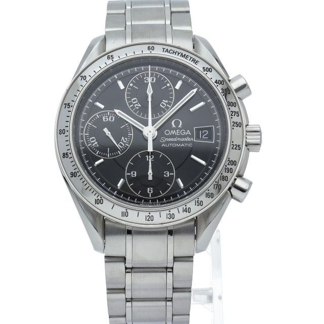 オメガの代表的な人気シリーズ「スピードマスターデイト」。クロノグラフ・デイト表示機能付きと便利で実用性のある1本です。