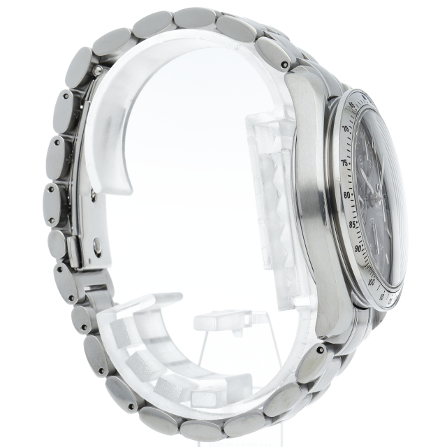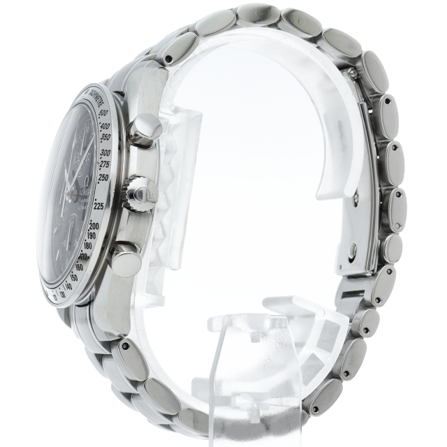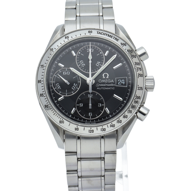 オメガの代表的な人気シリーズ「スピードマスターデイト」。クロノグラフ・デイト表示機能付きと便利で実用性のある1本です。