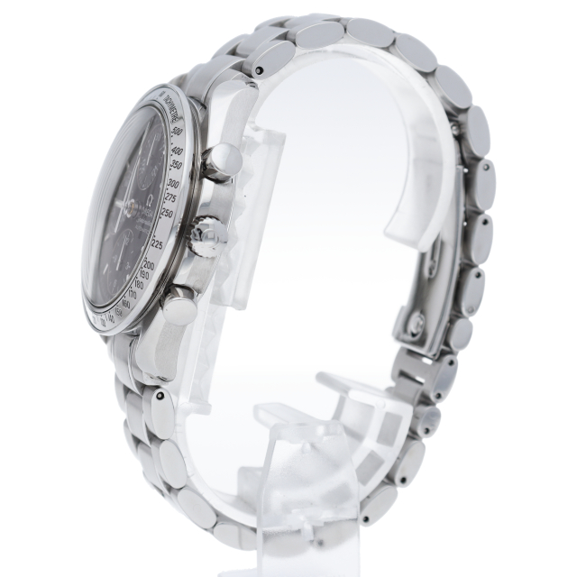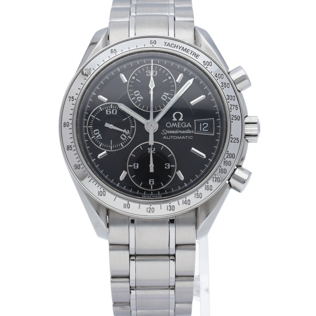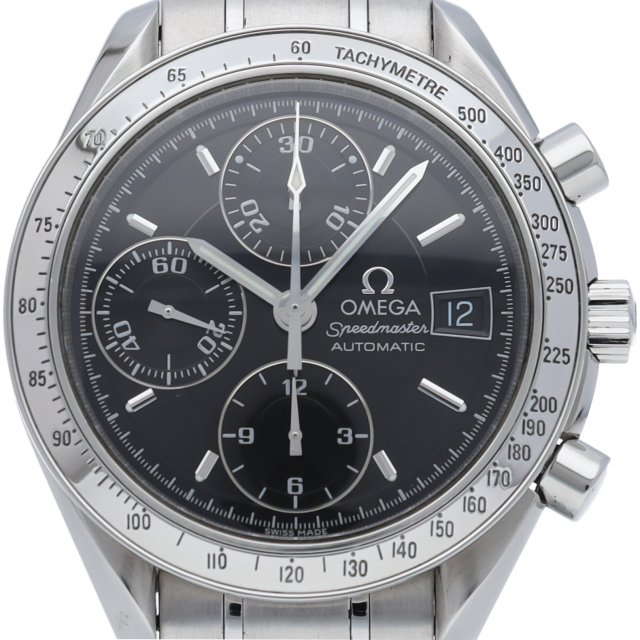 オメガの代表的な人気シリーズ「スピードマスターデイト」。クロノグラフ・デイト表示機能付きと便利で実用性のある1本です。