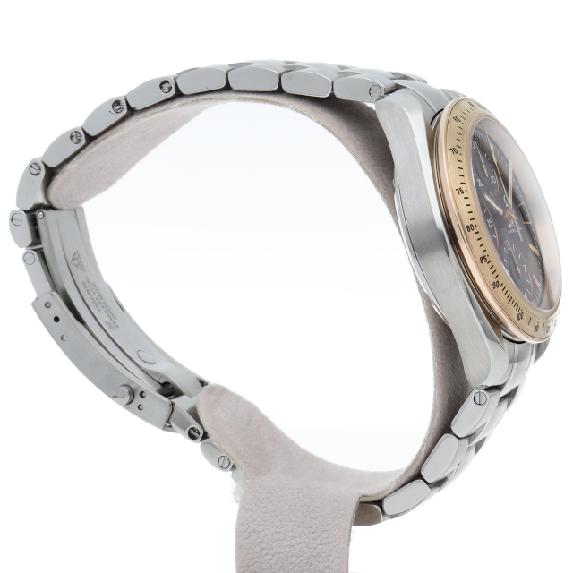オメガの3513シリーズがモデルチェンジされた新型モデル。ケース・デザイン・バックル等がパワーアップされてファッション性・実用性が更に高まった人気ウォッチ。べゼル・インデックス・針にはピンクゴールドを使用した豪華な1本となっております。