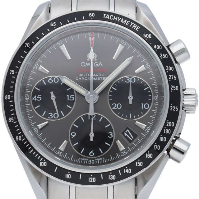 オメガの人気シリーズ「スピードマスター デイト」のクロノメーター規格をパスしたモデル。実用性とデザイン性を兼ね備えた人気の1本。