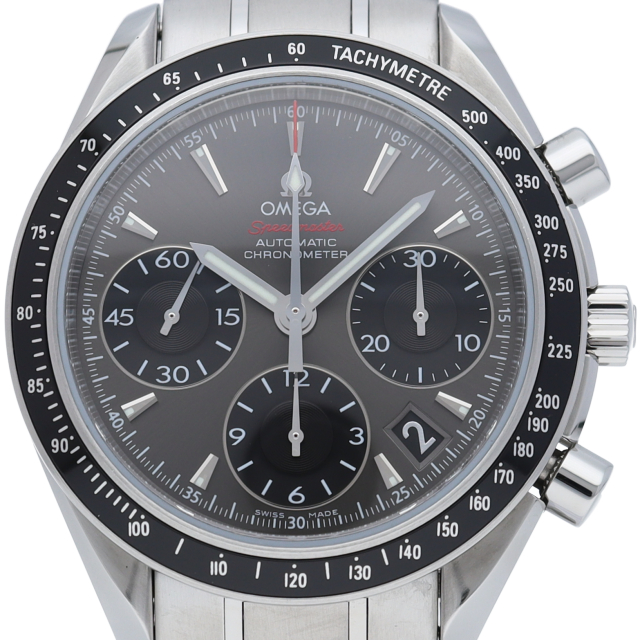 オメガの人気シリーズ「スピードマスター デイト」のクロノメーター規格をパスしたモデル。実用性とデザイン性を兼ね備えた人気の1本。