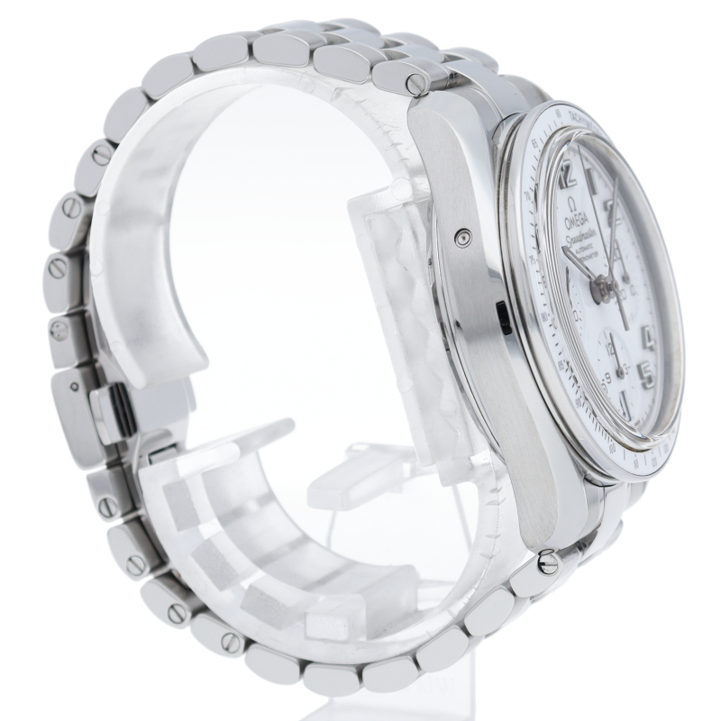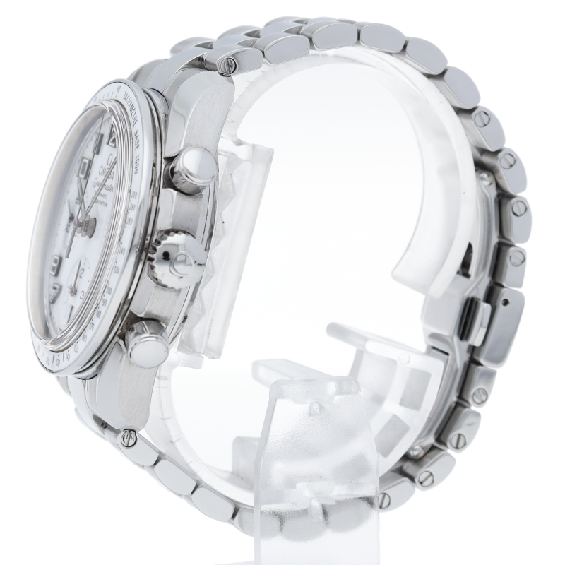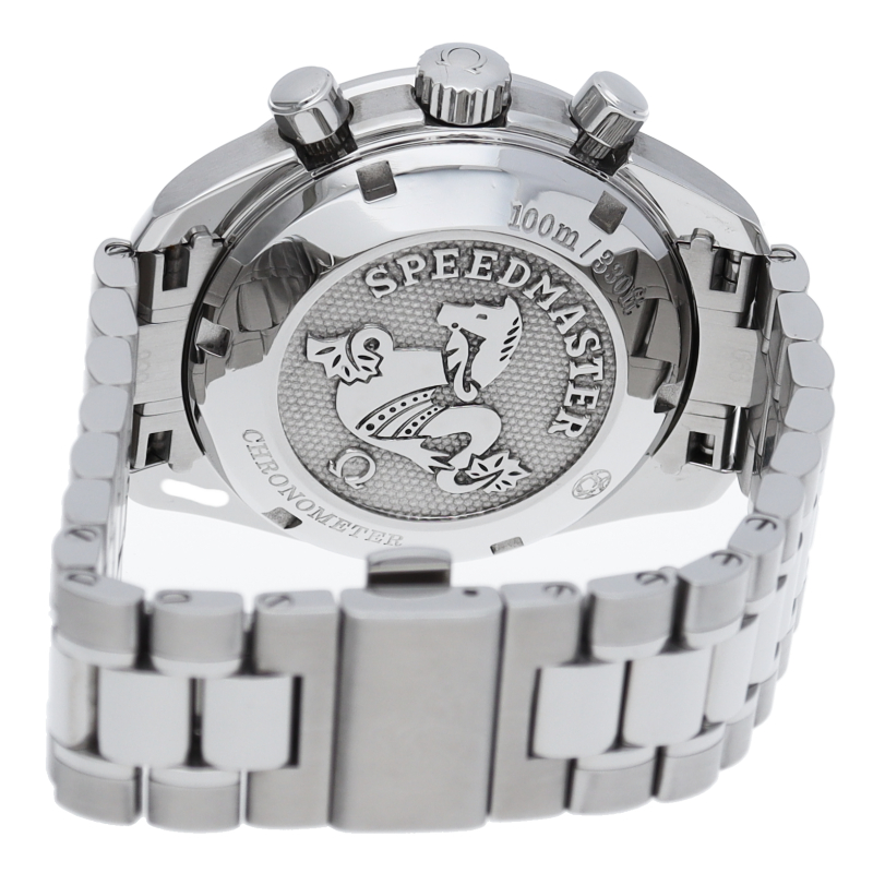 今までのモデルと比べ、ブレスレットが変更され、重量感のあるしっかりとしたタイプになりました。クロノメーター規格をパスしたムーブメントなど、各部が進化した新世代のスピードマスターです。