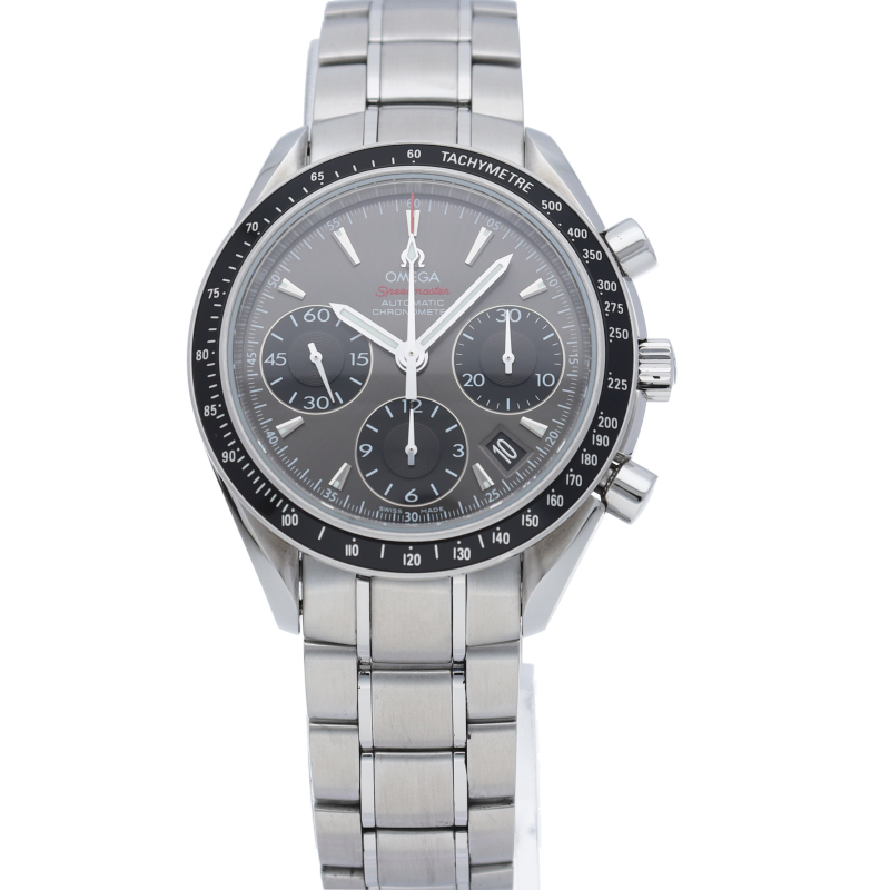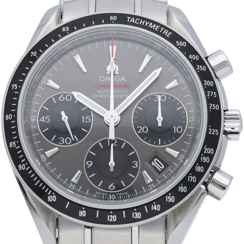 オメガの人気シリーズ「スピードマスター デイト」のクロノメーター規格をパスしたモデル。実用性とデザイン性を兼ね備えた人気の1本。