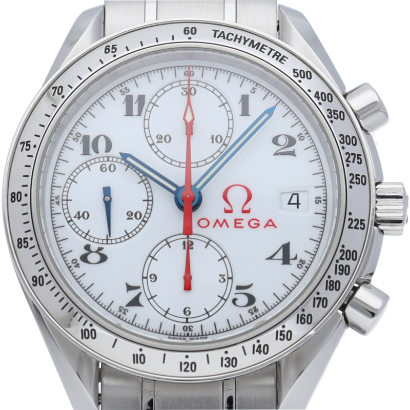 2004年アテネオリンピック限定の「オリンピック・コレクション」が入荷致しました。ホワイトフェイスに配置された鮮やかなレッドカラーのクロノグラフ針は見事な視認性を確保しております。