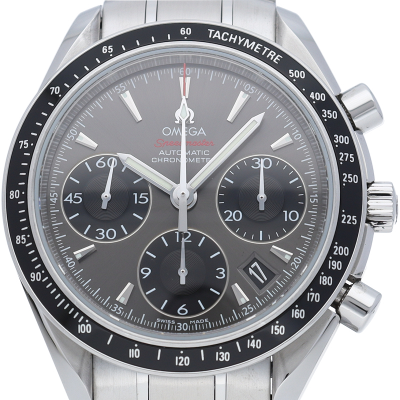 オメガの人気シリーズ「スピードマスター デイト」のクロノメーター規格をパスしたモデル。実用性とデザイン性を兼ね備えた人気の1本。