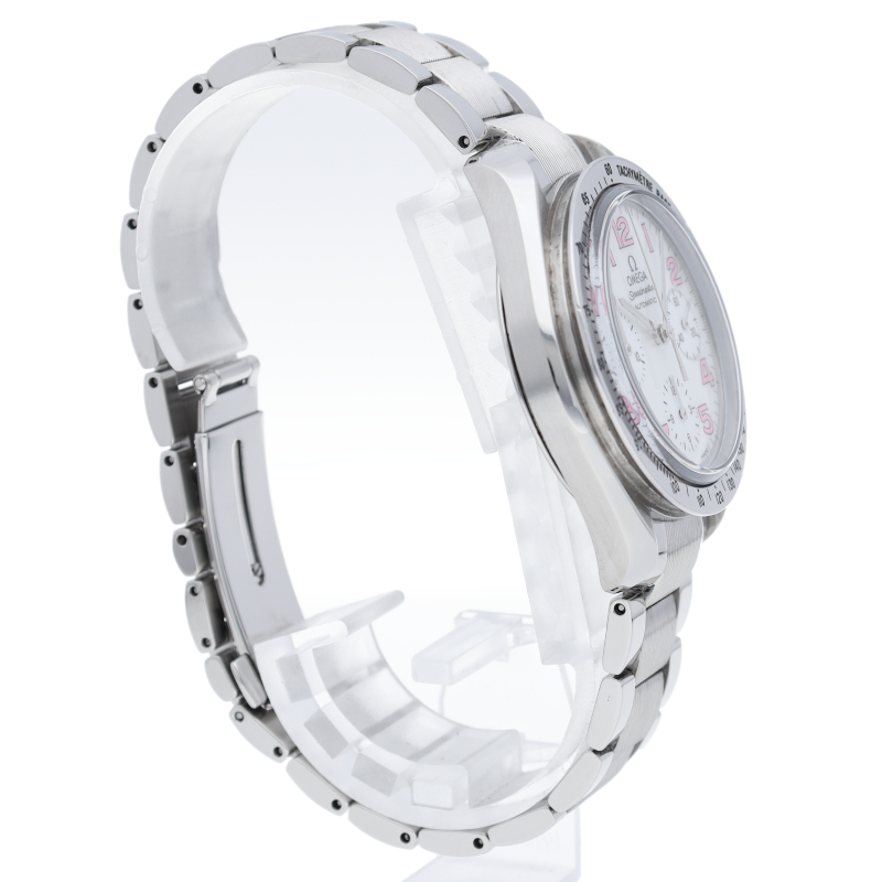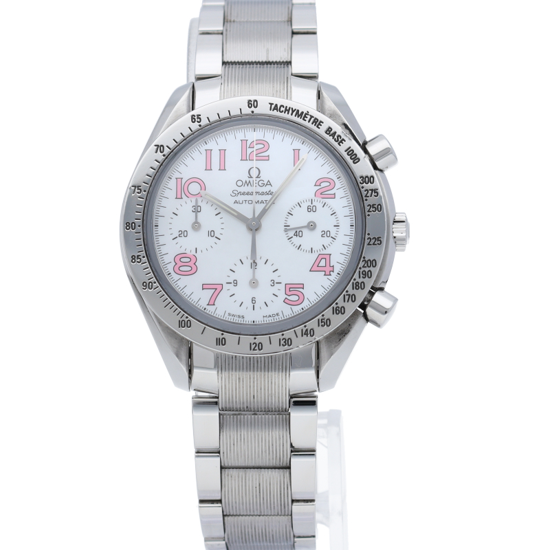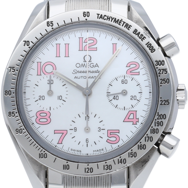 オメガの代表的な人気シリーズ「スピードマスター・デイト」。鮮やかなホワイトシェル文字盤。珍しい逸品です。