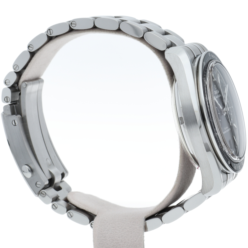 マスターコーアクシャル搭載でケースサイズも44ミリに大型化されたスピードマスターレーシングです。インダイアルが横に2つ並んだデザインが特徴的です。