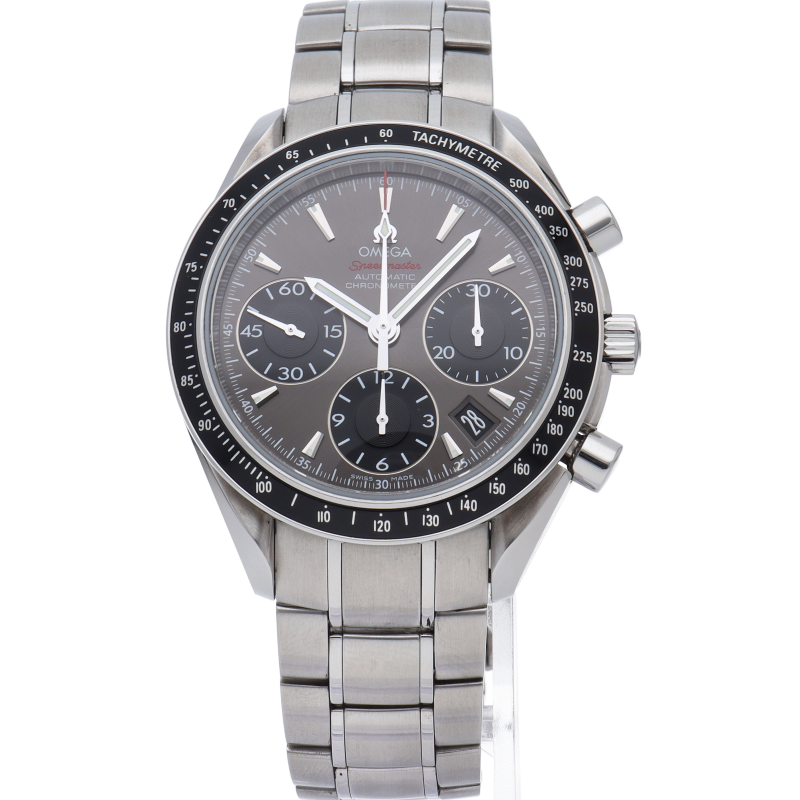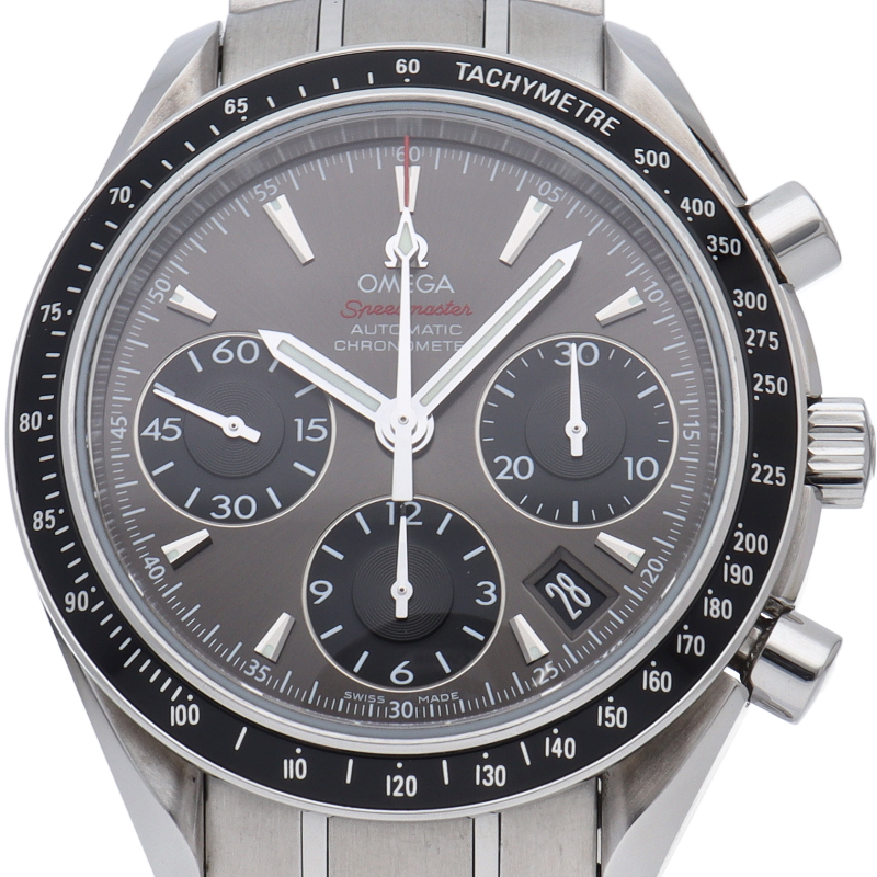 オメガの人気シリーズ「スピードマスター デイト」のクロノメーター規格をパスしたモデル。実用性とデザイン性を兼ね備えた人気の1本。