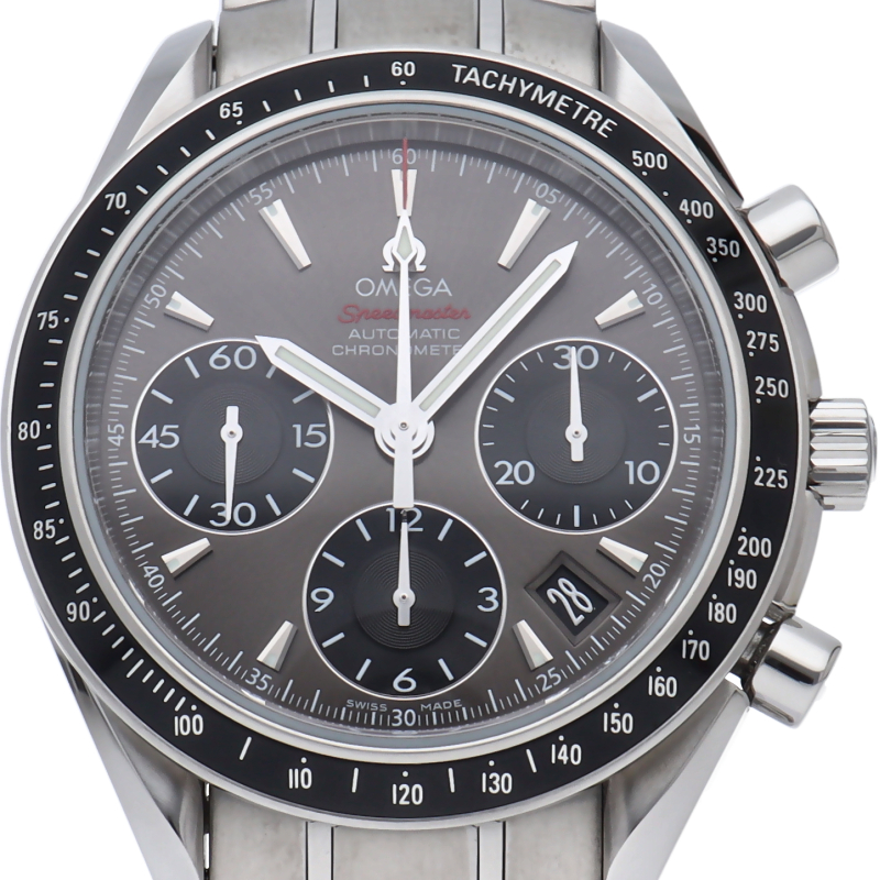 オメガの人気シリーズ「スピードマスター デイト」のクロノメーター規格をパスしたモデル。実用性とデザイン性を兼ね備えた人気の1本。