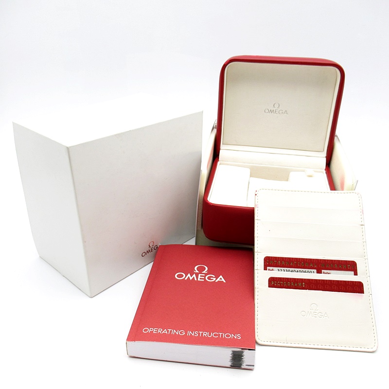 オメガの人気シリーズ「スピードマスター デイト」のクロノメーター規格をパスしたモデル。実用性とデザイン性を兼ね備えた人気の1本。