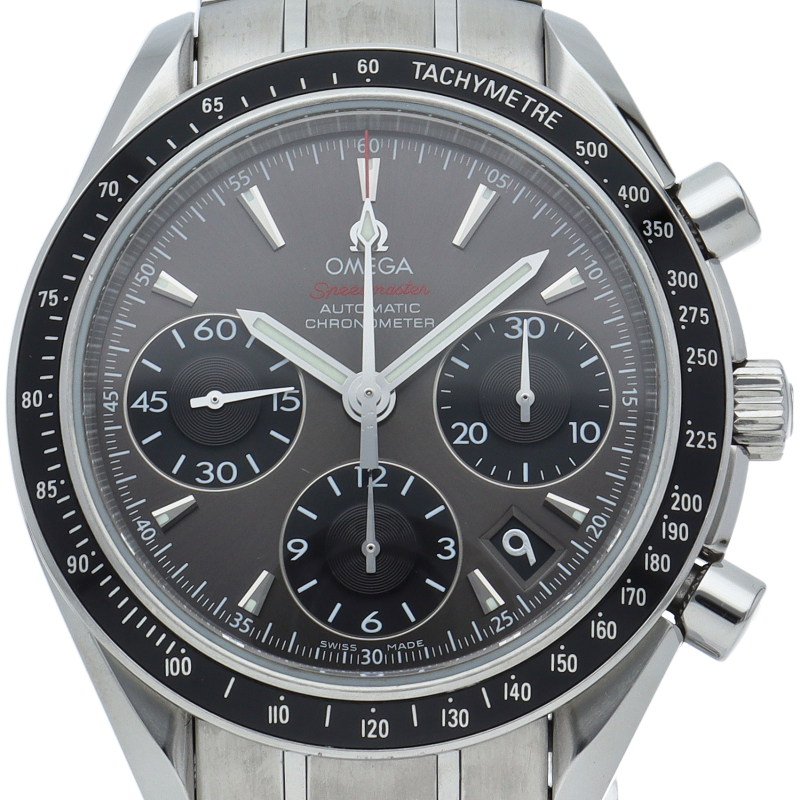 オメガの人気シリーズ「スピードマスター デイト」のクロノメーター規格をパスしたモデル。実用性とデザイン性を兼ね備えた人気の1本。