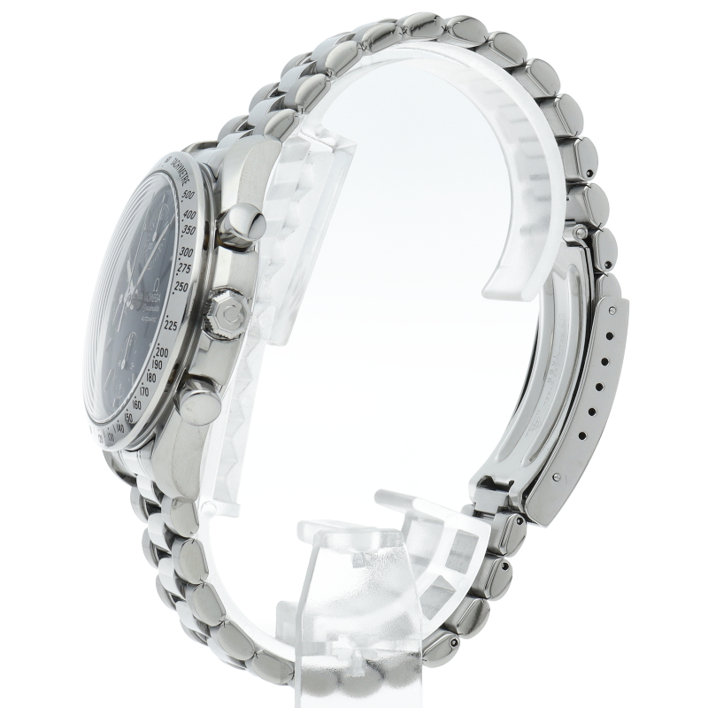 オメガの代表的な人気シリーズ「スピードマスターデイト」。クロノグラフ・デイト表示機能付きと便利で実用性のある1本です。