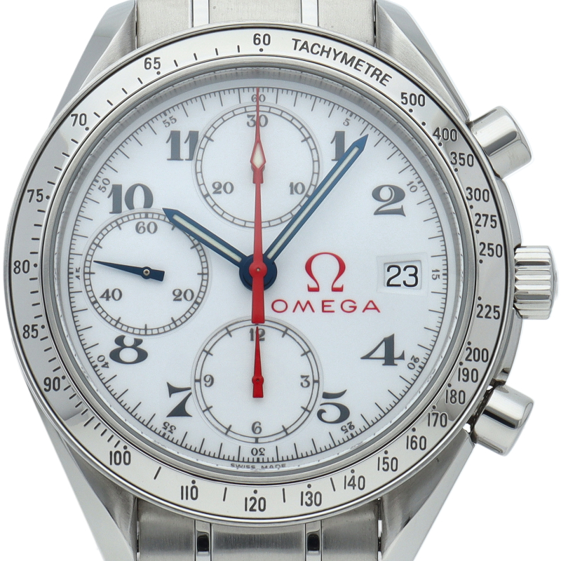 オメガの代表的な人気シリーズ「スピードマスター・デイト」。クロノグラフ・デイト表示機能付きと便利で実用性のある1本です。オリンピックコレクションモデルをレギュラー化したモデル。