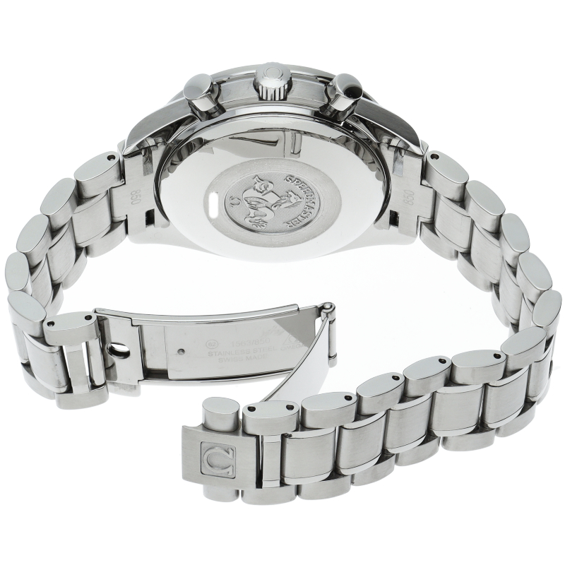 オメガの代表的な人気シリーズ「スピードマスターデイト」。クロノグラフ・デイト表示機能付きと便利で実用性のある1本です。