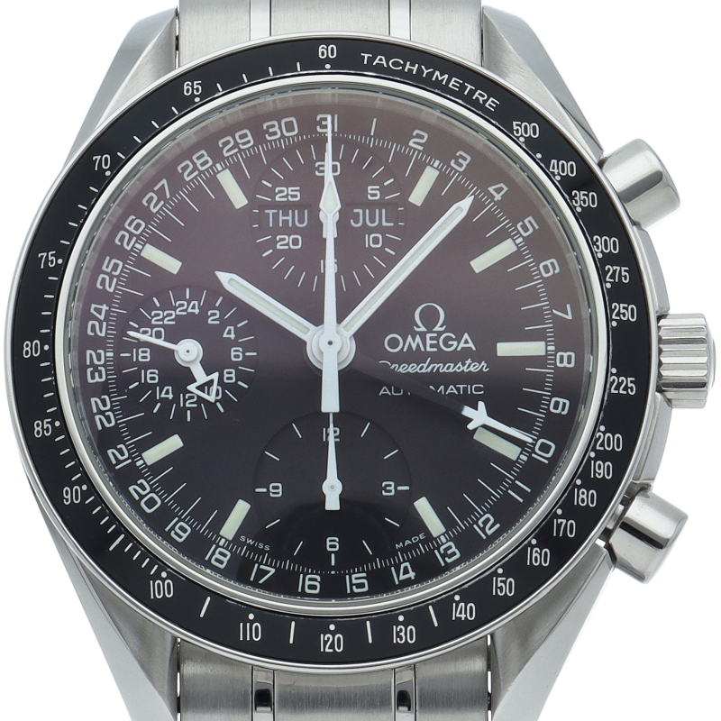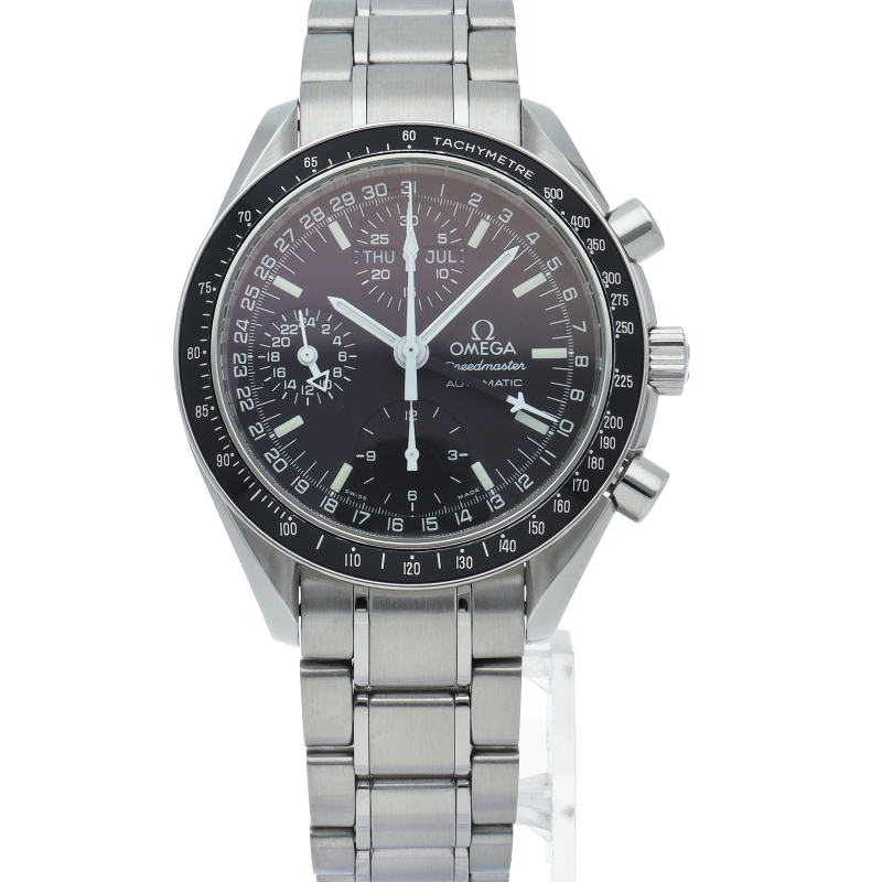 オメガの人気「スピードマスター」。クロノグラフ、月・日・曜日表示機能がついた便利な多機能ウォッチ。スタイルを選ばずにご使用いただける便利な1本。