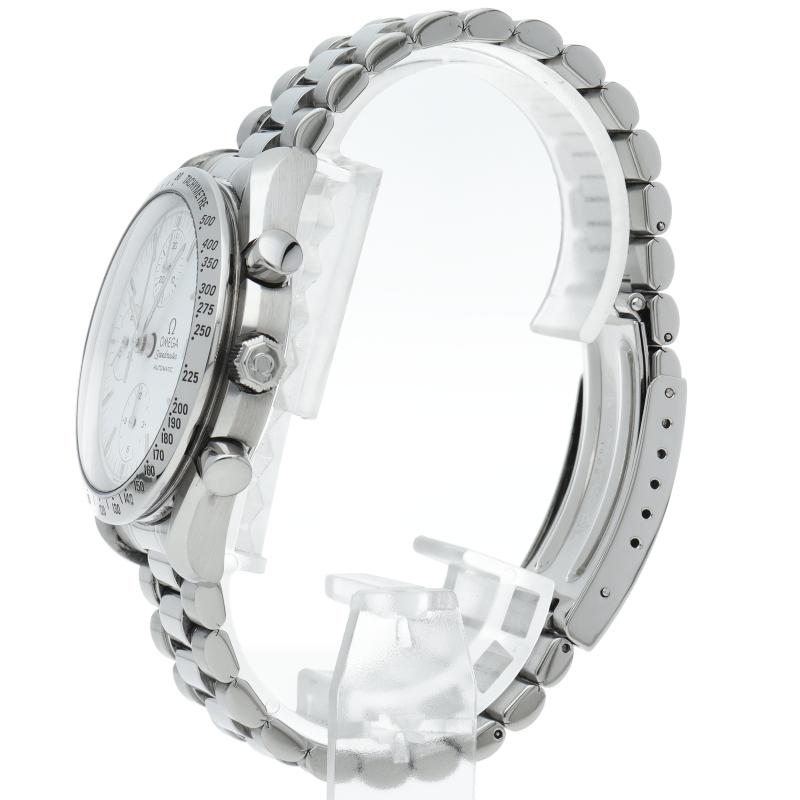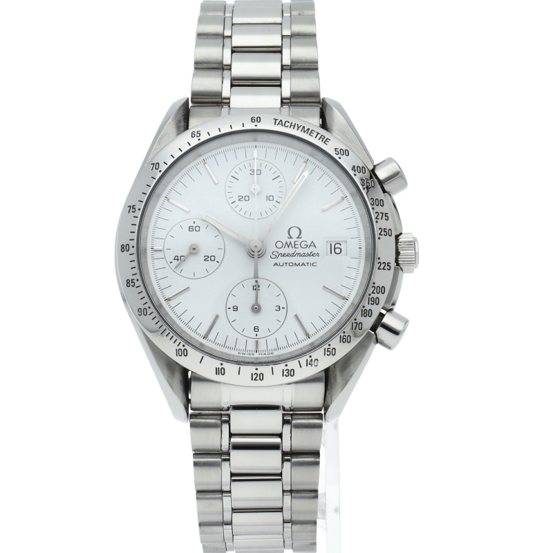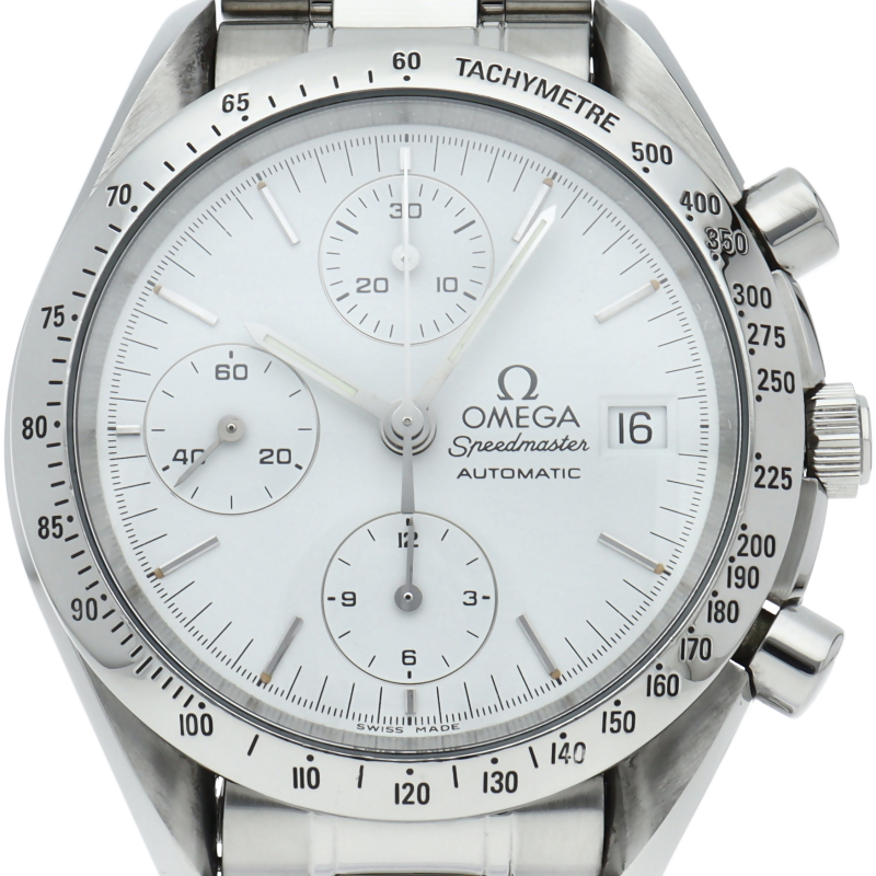 現行ラインでは白文字盤のバリエーションは少ないですので、このモデルは希少と言えるかもしれません。デザイン的にはまさにクロノグラフのお手本のような基本に忠実なデザインですので、オンオフ問わず活躍してくれると思います。
