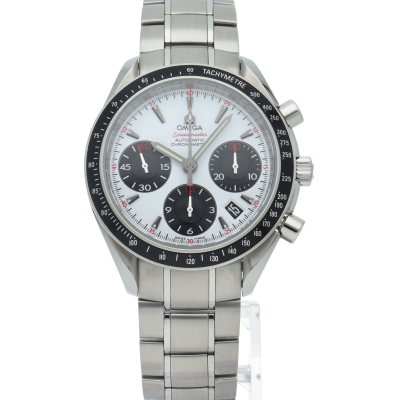 オメガの人気シリーズ「スピードマスター デイト」のクロノメーター規格をパスしたモデル。実用性とデザイン性を兼ね備えた人気の1本。