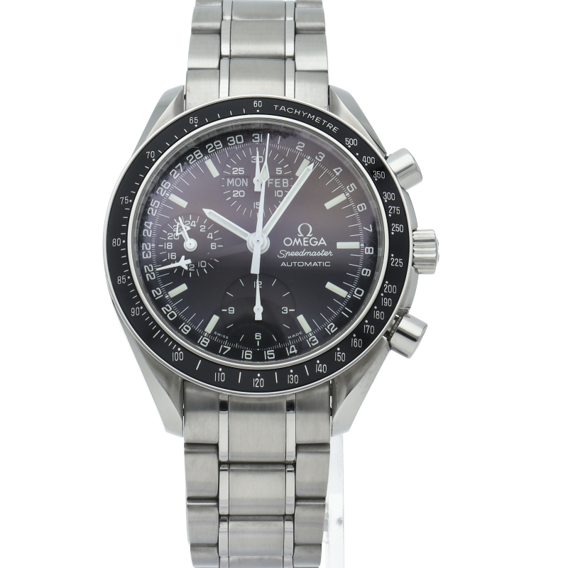 オメガの人気「スピードマスター」。クロノグラフ、月・日・曜日表示機能がついた便利な多機能ウォッチ。スタイルを選ばずにご使用いただける便利な1本。