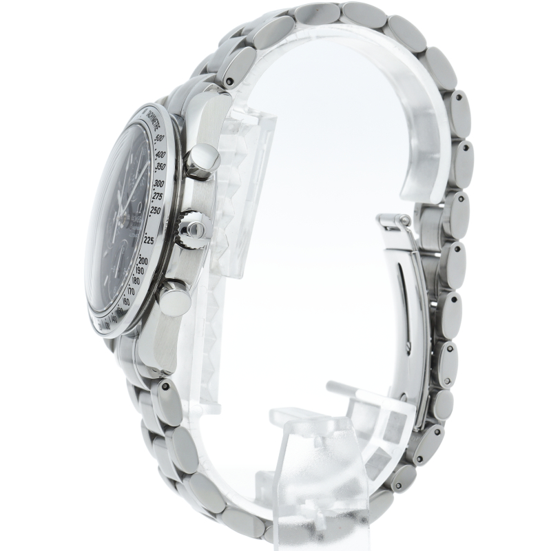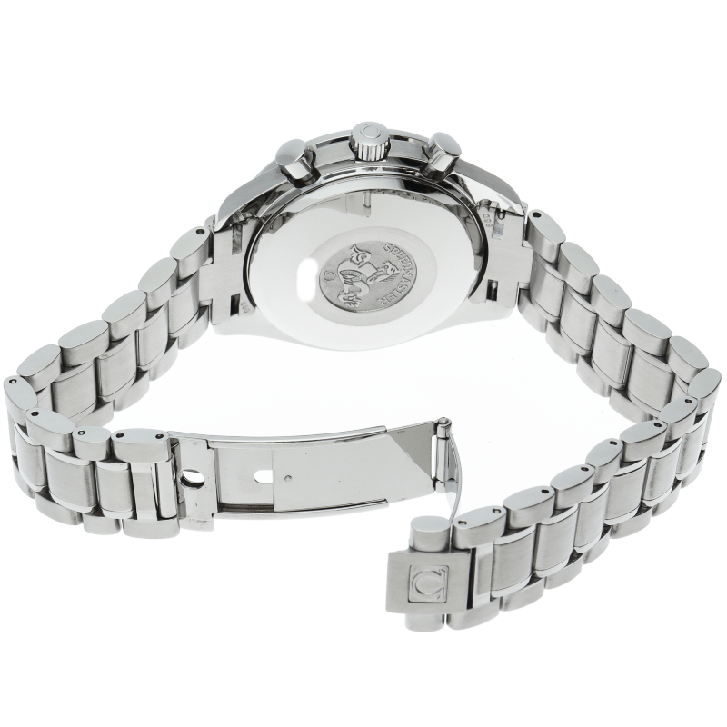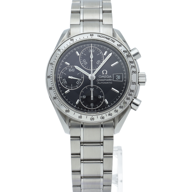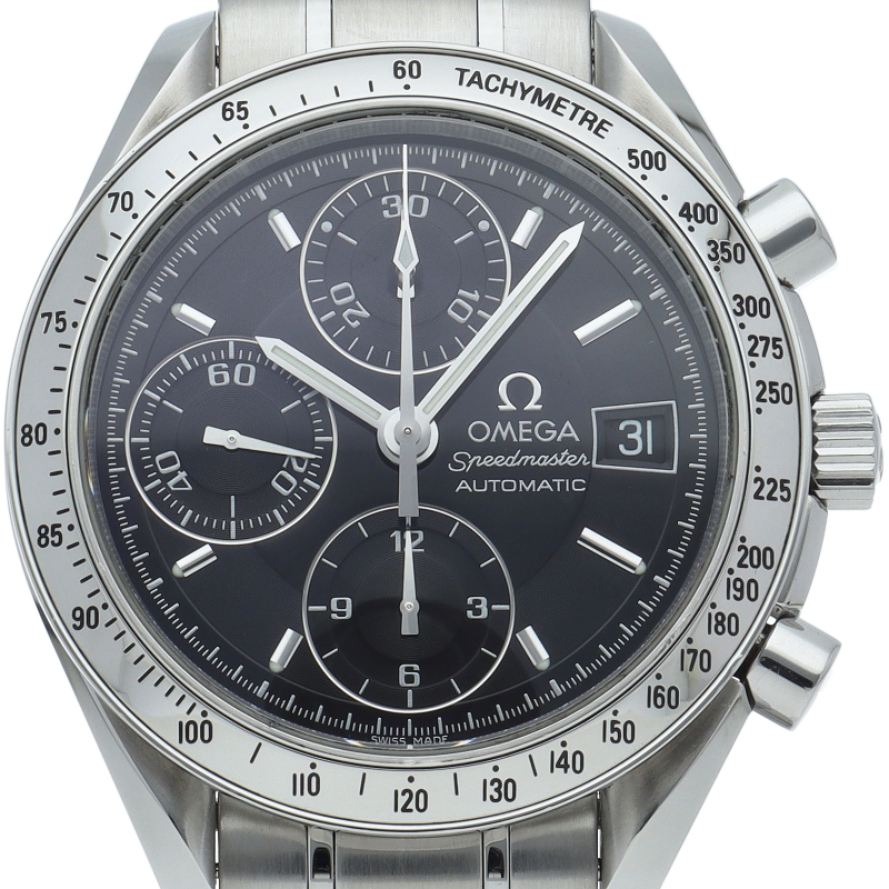 オメガの代表的な人気シリーズ「スピードマスターデイト」。クロノグラフ・デイト表示機能付きと便利で実用性のある1本です。