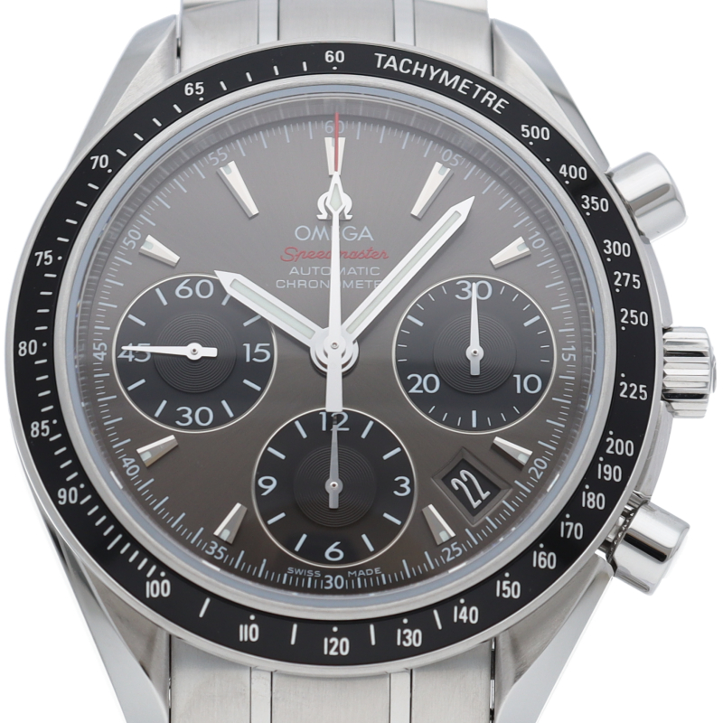 オメガの人気シリーズ「スピードマスター デイト」のクロノメーター規格をパスしたモデル。実用性とデザイン性を兼ね備えた人気の1本。
