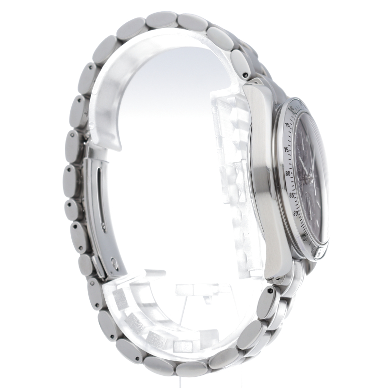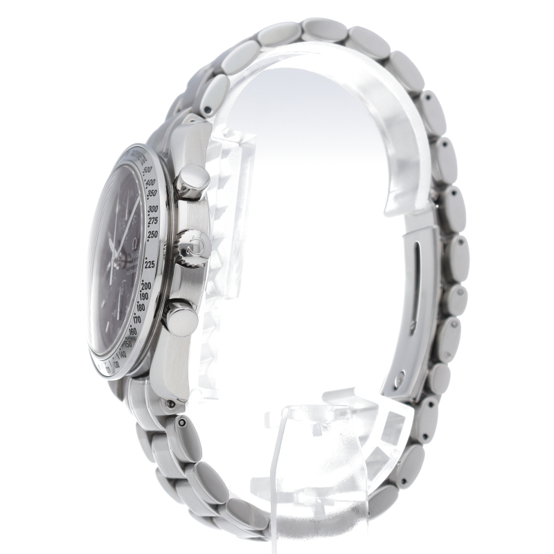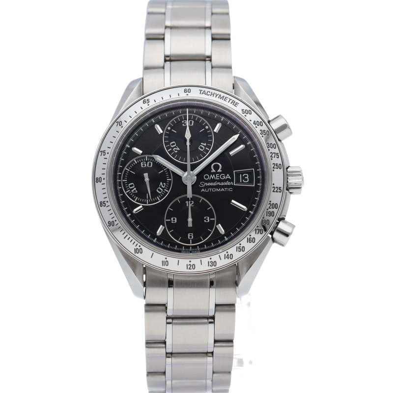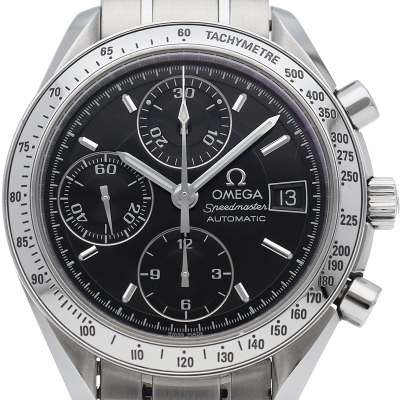 オメガの代表的な人気シリーズ「スピードマスターデイト」。クロノグラフ・デイト表示機能付きと便利で実用性のある1本です。