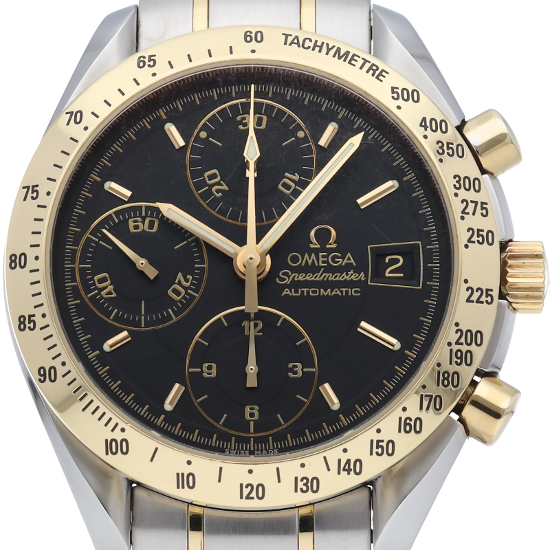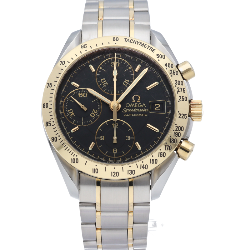 オメガの代表的な人気シリーズ「スピードマスター・デイト」。クロノグラフ・デイト表示機能付きと便利で実用性のある1本です。希少なコンビモデル。