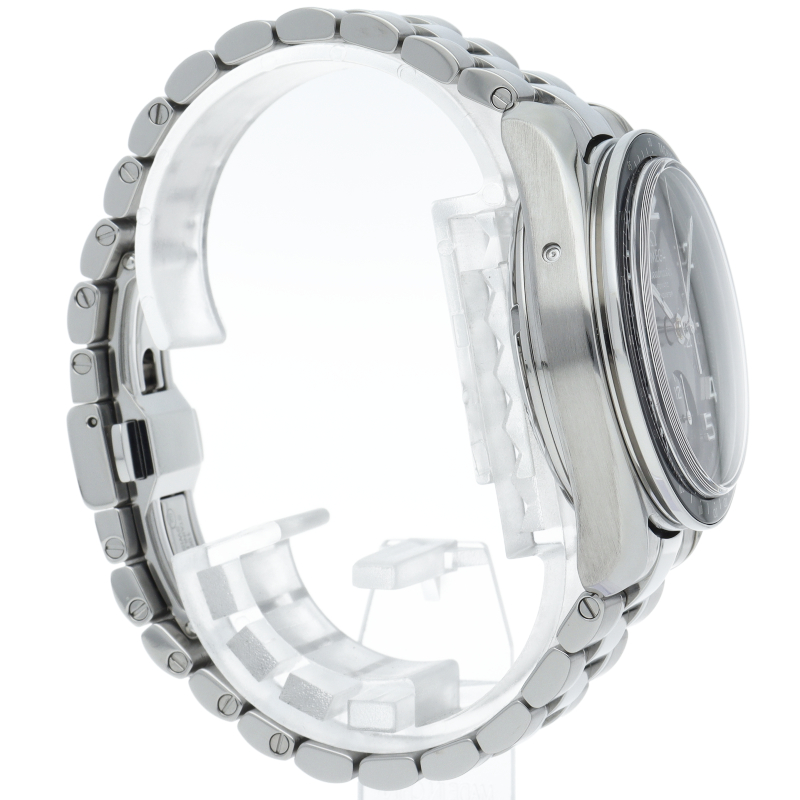 濃いグレーのダイアルとブラックセラミック製タキメーターベゼルがシックな印象。ブレスレットの質感が向上し、調整はネジ式に変更されました。100mの防水性能やCOSC認定クロノメーター規格のキャリバー3304を搭載するなど、各部が進化した新世代のスピードマスターです。