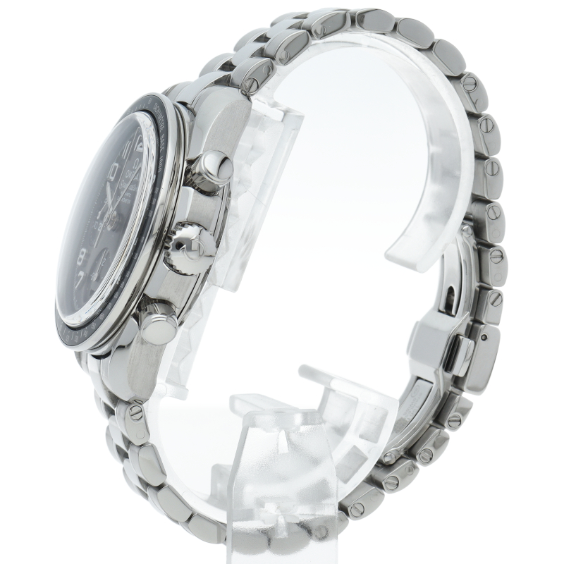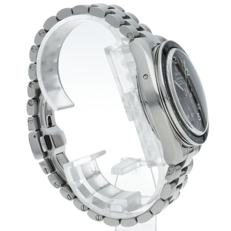 濃いグレーのダイアルとブラックセラミック製タキメーターベゼルがシックな印象。ブレスレットの質感が向上し、調整はネジ式に変更されました。100mの防水性能やCOSC認定クロノメーター規格のキャリバー3304を搭載するなど、各部が進化した新世代のスピードマスターです。