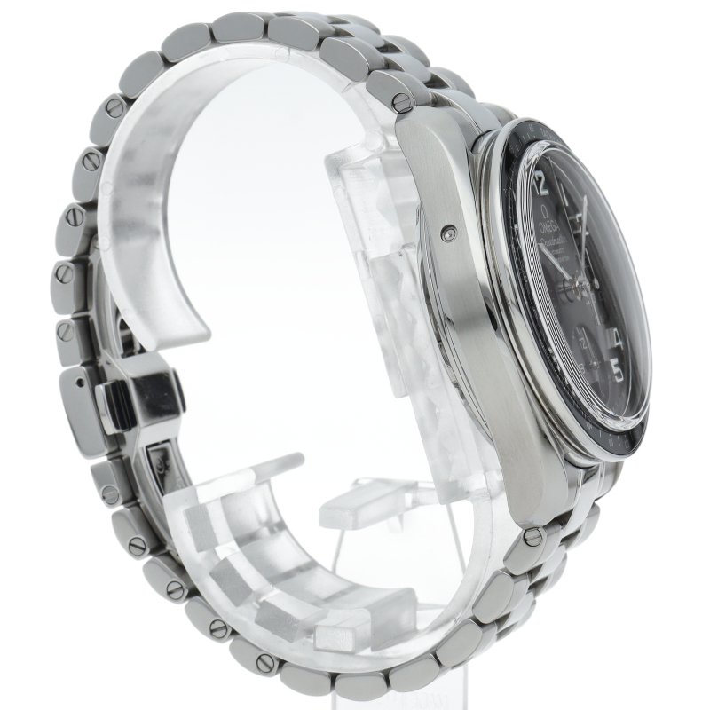 濃いグレーのダイアルとブラックセラミック製タキメーターベゼルがシックな印象。ブレスレットの質感が向上し、調整はネジ式に変更されました。100mの防水性能やCOSC認定クロノメーター規格のキャリバー3304を搭載するなど、各部が進化した新世代のスピードマスターです。